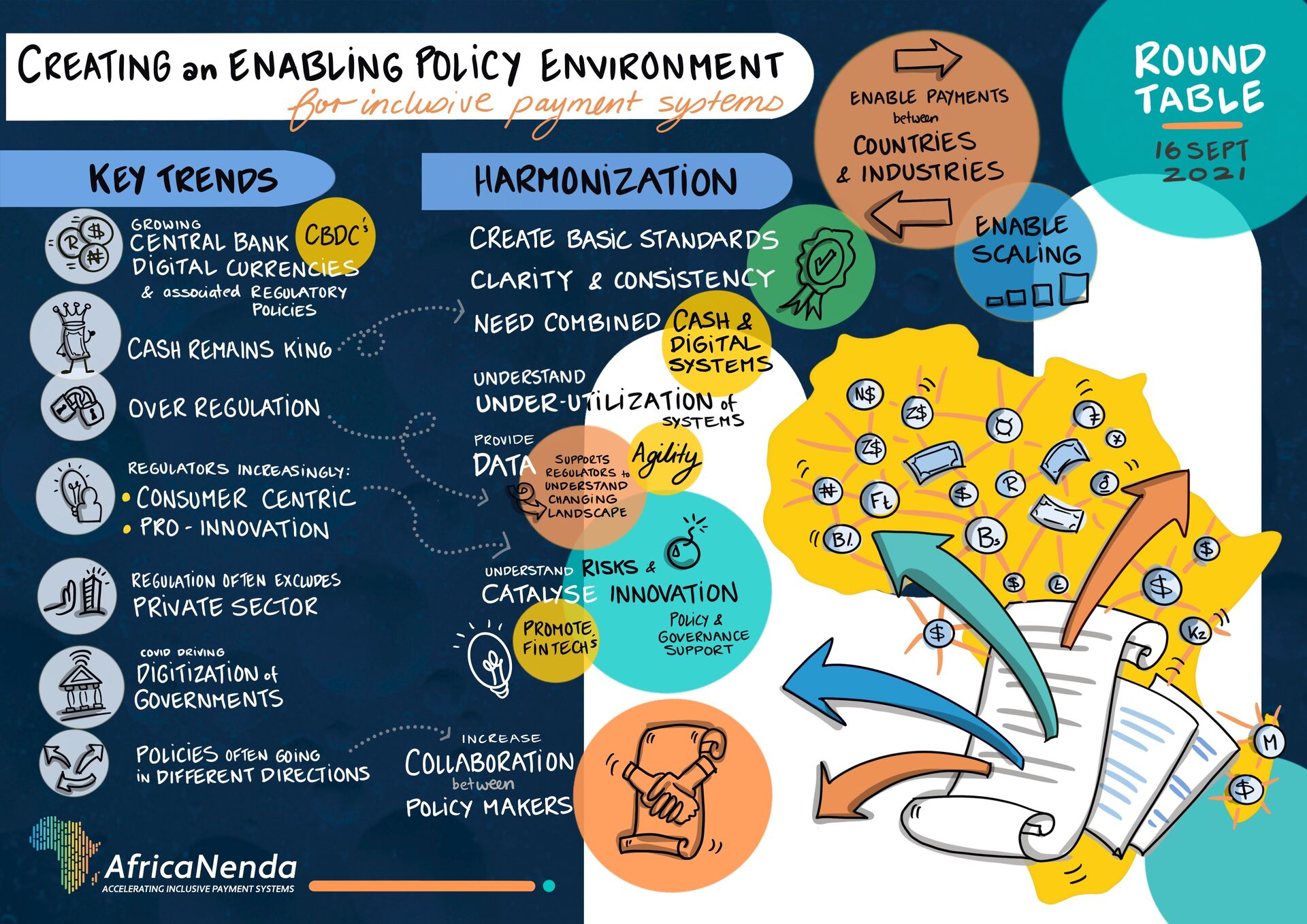 في 16 سبتمبر، عقدت منظمة AfricaNenda اجتماع مائدة مستديرة حول إنشاء بيئة سياسات تمكينية لأنظمة الدفع الشاملة ضم خبراء بارزين من مختلف القطاعات والأطراف المعنية في مجال الشمول المالي وأنظمة الدفع الشاملة في القارة الأفريقية.