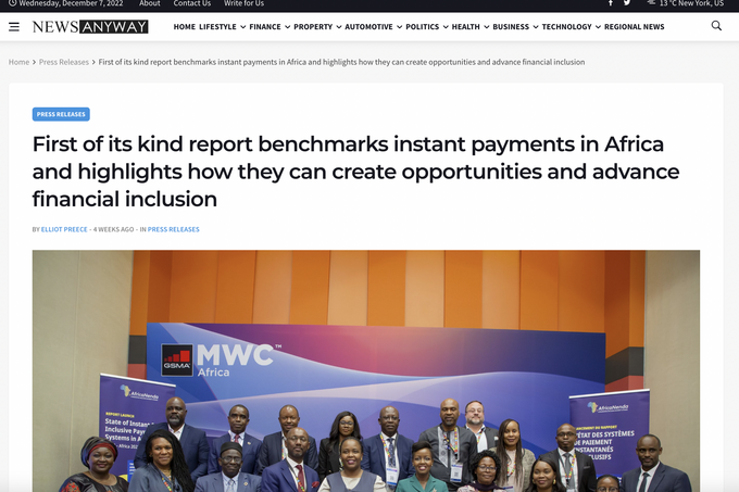 News Anyway: First of its kind report benchmarks instant payments in Africa and highlights how they can create opportunities and advance financial inclusion