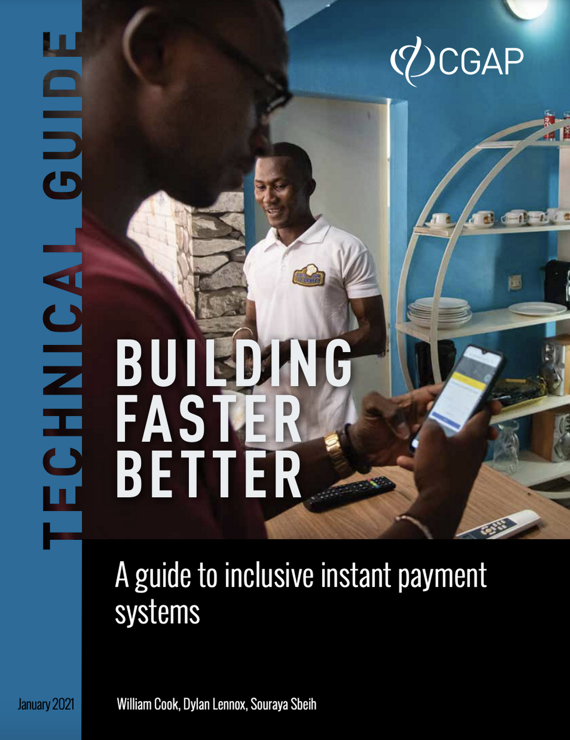 Cook, William, Dylan Lennox, and Souraya Sbeih. 2021. “Building Faster Better: A Guide to Inclusive Instant Payment Systems.” Technical Guide. Washington, D.C.: CGAP.